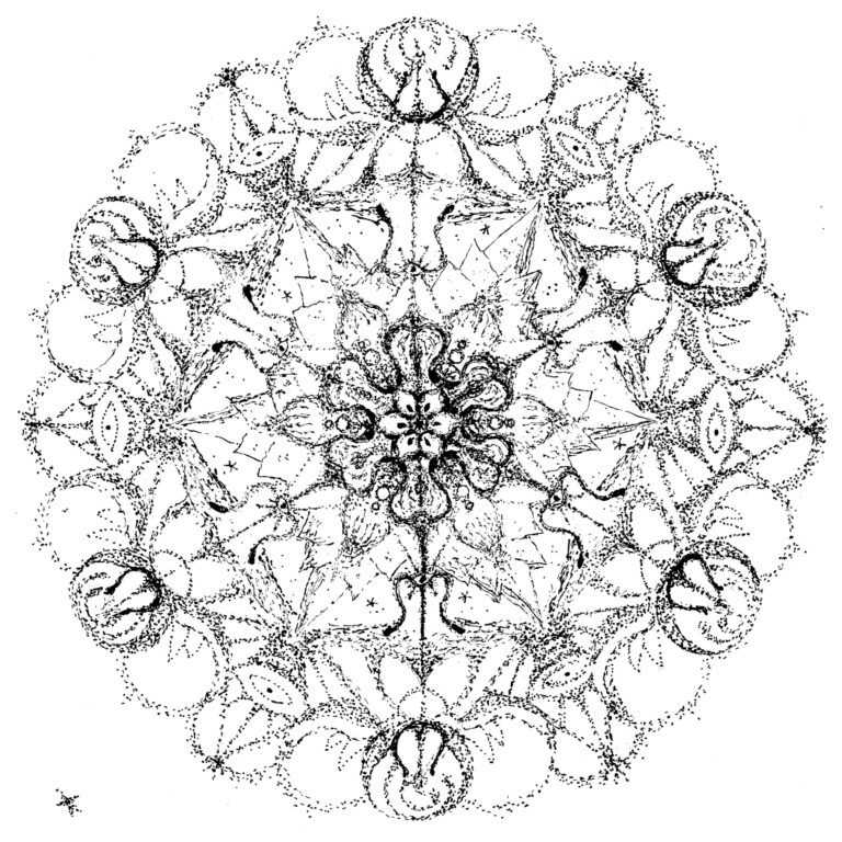 I am fully aware that there are plenty of mandalas out there, but my ones, I believe, are quite different and certainly unique. I have seen apps that create mandalas in the blink of an eye – just draw a line in one section and it will be repeated around the center as often as you wish. In that way one can create hundreds of mandalas without any effort or too much thought and without much heART, i would say. The mandalas that you can see here are all done without geometric tools. I use no ruler or pair of compasses to create my mandalas, only my eyes and my hands if i want to re-check distances. (Our eyes are naturally quite accurate in measuring and i love to challenge myself to become more and more precise with time and practice.) I usually use an A4 size paper and start with a pencil trying to be as free-flowing as possible. I use an eraser if adjustments are necessary, then i grab my beloved ink pen and start dotting along the lines, point after point.